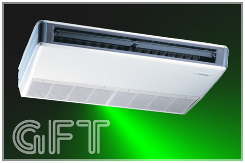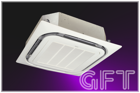 Unitò interna a soffitto che serve solitamente grandi ambienti commerciali dove non è previsto un controsoffitto.